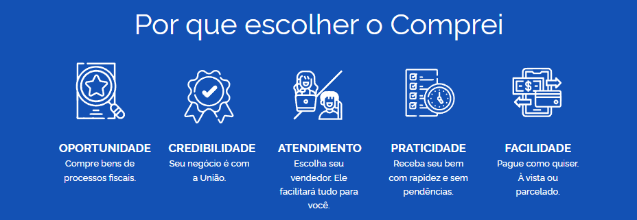 O Comprei é uma plataforma de negócios da União gerida pela Procuradoria-Geral da Fazenda Nacional para leiloar os imóveis para pagamento de dívidas fiscais.